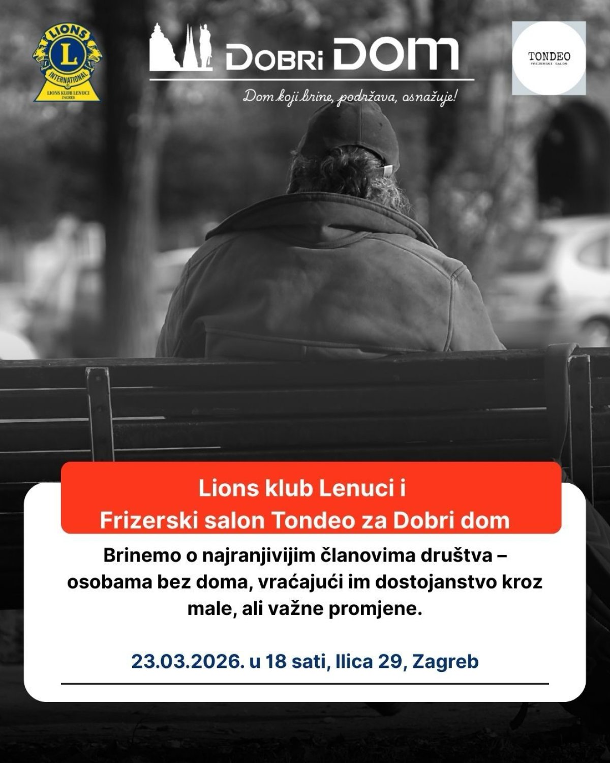 Lions club Lenuci, Frizerski salon Tondeo and DOBRI DOM: We take care of the most vulnerable members of society - homeless people, restoring their dignity through small but important changes