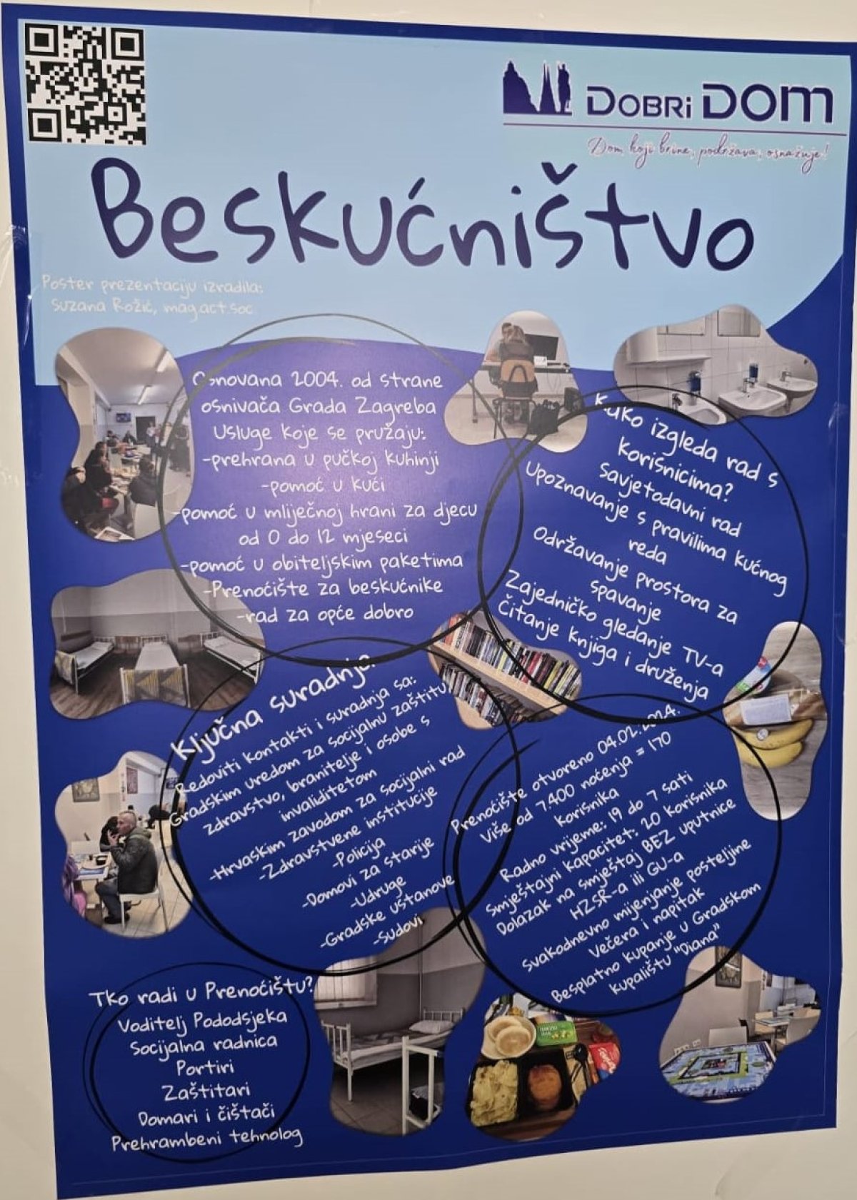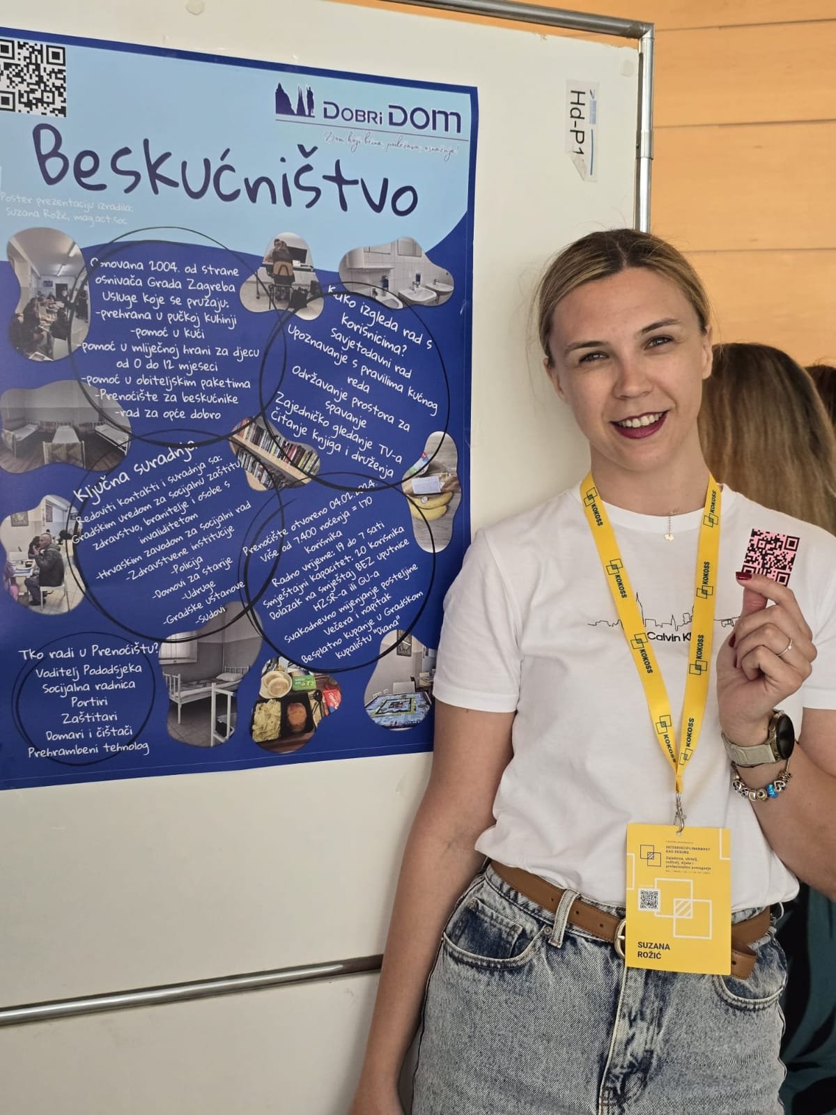 Uz mnoštvo bogatih plenarnih panel rasprava, tematskih sekcija i radionica, socijalna radnica Ustanove „Dobri dom“ Grada Zagreba također je i predstavila najnoviju uslugu Ustanove – Prenoćište za beskućnike, poster prezentacijom.