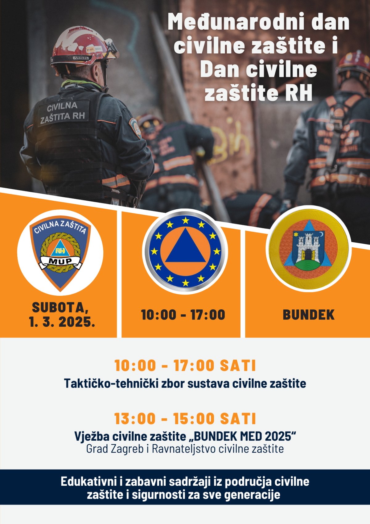 Međunarodni dan civilne zaštite i Dan civilne zaštite Republike Hrvatske obilježio se 1.3. na Bundeku kako bi se podigla svijest građana o brojnim rizicima i ispravnim obrascima ponašanja u katastrofama kao temelja prevencije...